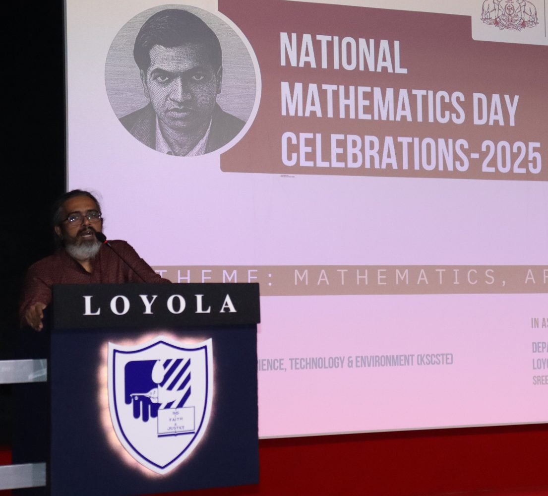 National Mathematics Day Celebrations on “Mathematics, Art & Creativity” The Kerala State Council for Science, Technology & Environment (KSCSTE), in association with the Departments of Data Science and Department of Fintech & AI at Loyola College of Social Sciences, celebrated National Mathematics Day 2025. The event was inaugurated by Dr. Sunil Thomas T., Director of ICFOSS , and presided over by Prof. A. Sabu, Member Secretary of KSCSTE. Dr. Sabu P. Thomas, SJ, Principal of Loyola College, welcomed the gathering , which included a diverse group of school and college students, faculty, and participants from various departments. Key felicitations were offered by Prof. Saji P Jacob and Prof. Gabriel Simon Thattil. During the event, Professor E. Krishnan (Retired Professor, University College, Thiruvananthapuram) presented a fascinating narrative on how the value of π (Pi) was defined and refined across different generations and geographical boundaries. Prof. Achuthsankar S. Nair demonstrated how mathematics breathes life into music and other daily experiences and emphasized that mathematics is not merely a set of calculations but a creative force integrated into every aspect of life, from rhythmic patterns in music to symmetry in nature. The programme successfully inspired students and faculty alike to view the discipline through a more artistic and creative lens