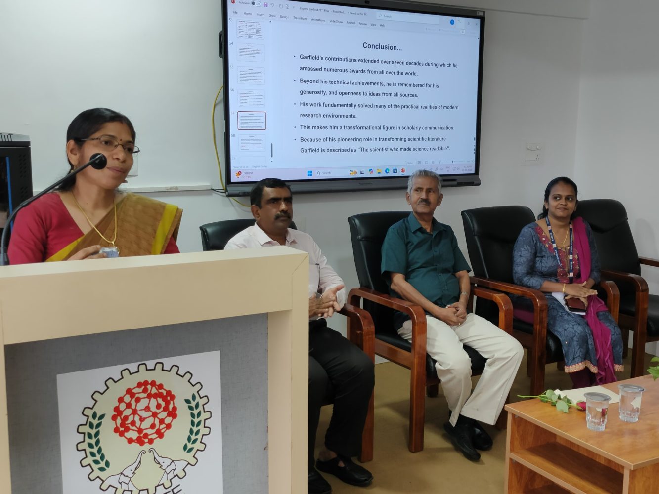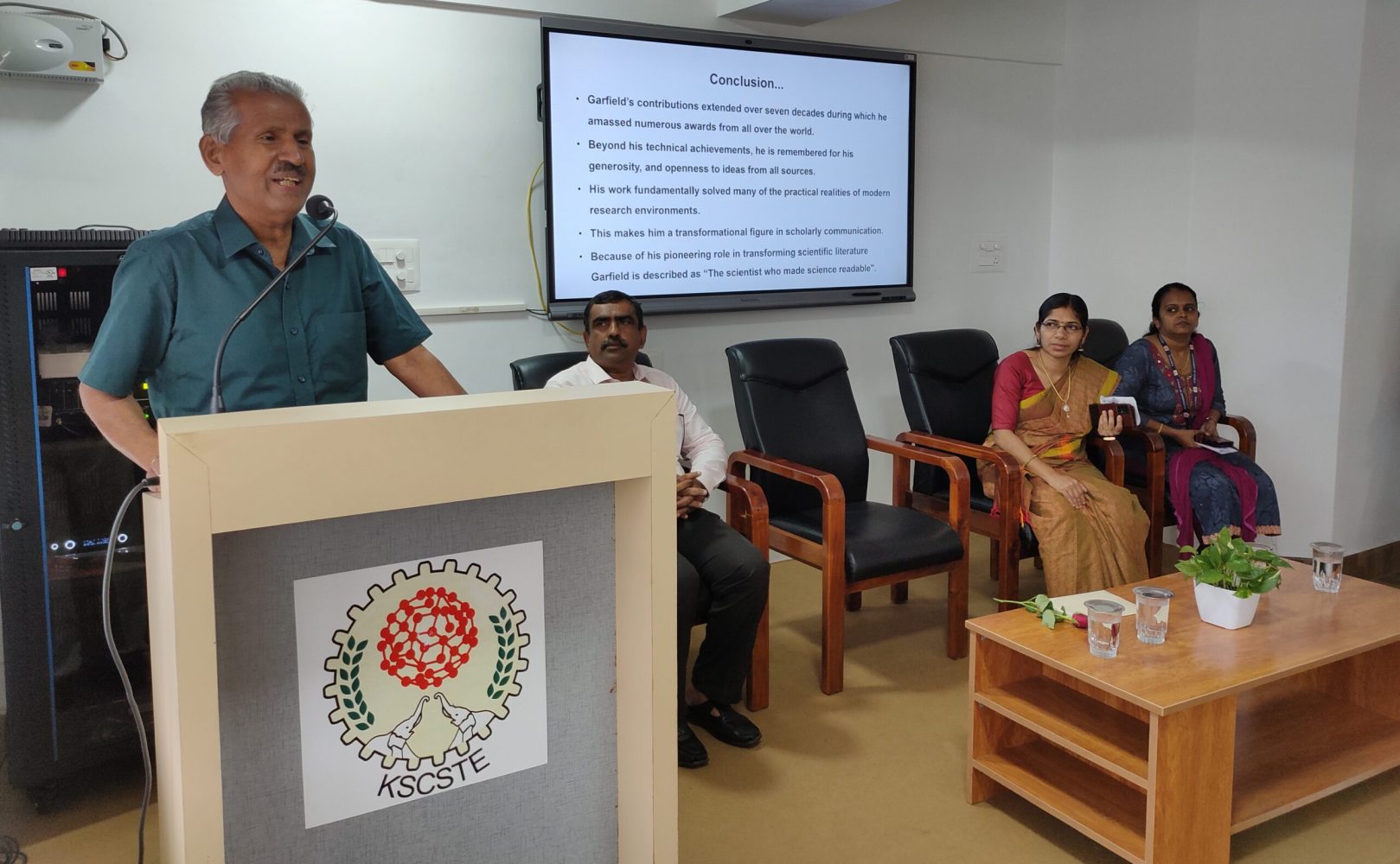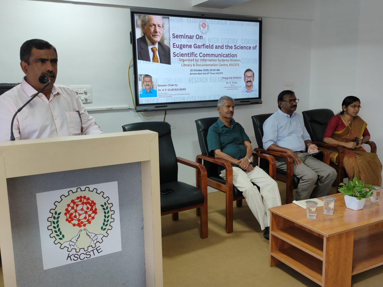 A seminar titled “Eugene Garfield and the Science of Scientific Communication” was held on 22nd October 2025 at Anna Mani Hall, KSCSTE, to celebrate a monumental legacy—the 100th birth anniversary of Eugene Garfield, the visionary father of citation indexing and a global influencer in bibliometrics and scientific communication.